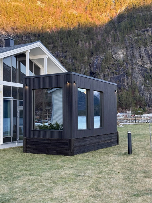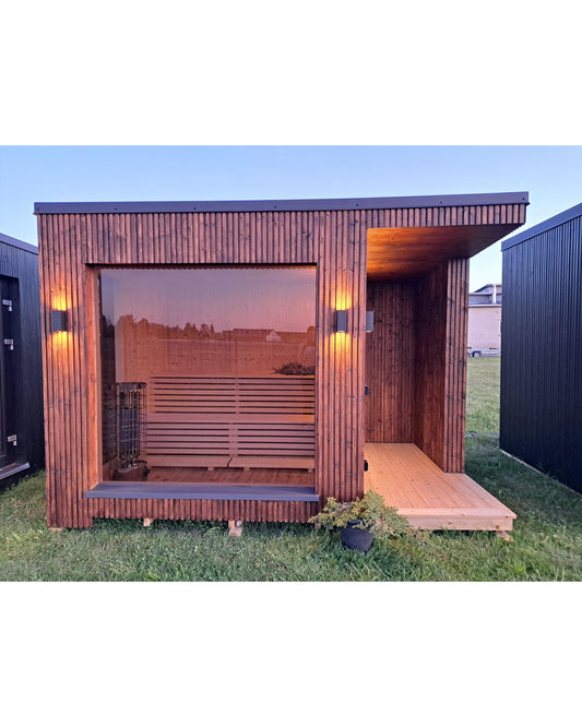 Bastu - Cube Contrast One – 2.4 x 3.5 m med terrass (BV-stål)